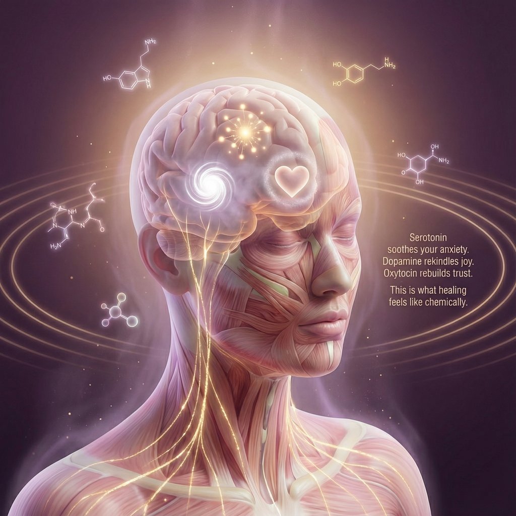 Anxiety often lives in the body — in your shoulders, your jaw, your stomach. Massage helps by working directly on your nervous system. You’ll often feel: