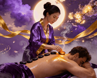 Smooth, heated stones are gently placed and massaged across your body to melt tension and ease stress. The radiant warmth reaches deep into the muscles, creating a grounded, calming experience.